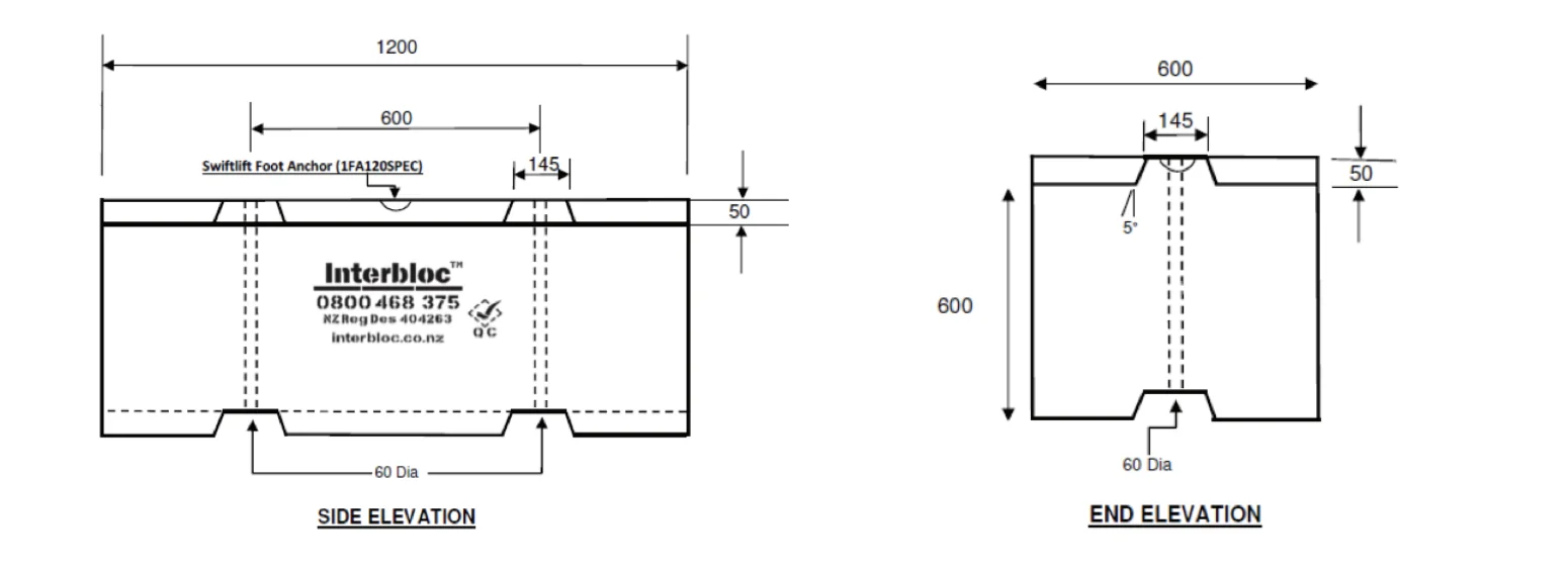 Interbloc utilises the Reid anchor systems. This consists of one or two 1.5t foot anchors cast into the top of the block. The foot anchor is then engaged using a Reid lifting klaw available to purchase from Envirocon. All lifting anchors have a factor of safety greater than five to comply with Work Safe Australia guidance on multiple lift precast concrete products.